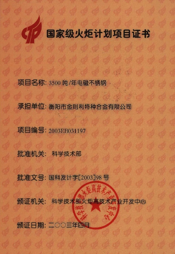衡陽(yáng)市金則利特種合金股份有限公司成立于一九九九年十二月,注冊(cè)資本人民幣兩千兩百萬(wàn)元。注冊(cè)地址:衡陽(yáng)市雁峰區(qū)白沙洲工業(yè)園長(zhǎng)塘路2號(hào)。公司主營(yíng)耐蝕軟磁合金,為湖南省高新技術(shù)企業(yè)。公司自成立以來(lái),即致力于耐蝕軟磁合金的研發(fā)。 研制出的JL-31(00Cr13si2Pb)、JL-31B(00Cr13si2)、JL-31BS(00Cr13Si2S)、JL-37B(0Cr17Si2)、JL-37(0Cr17···