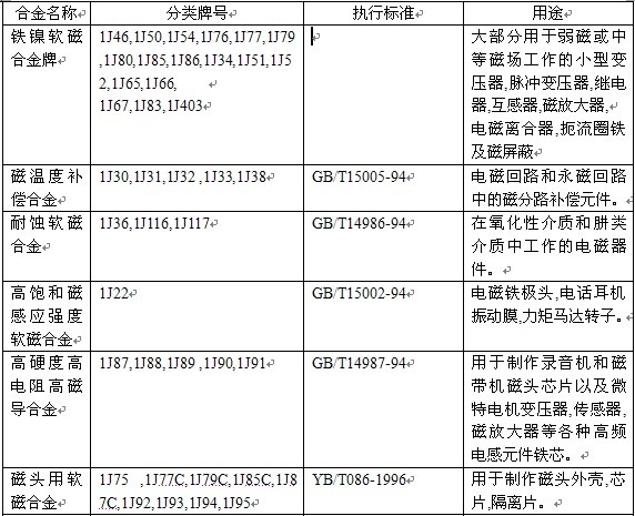 附:(下面是重要的硬質(zhì)軟磁合金的特點)
